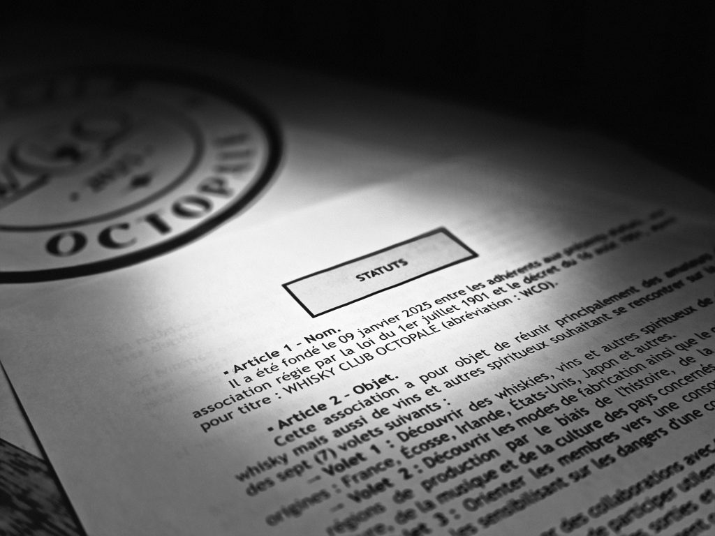 Les présents statuts définissent l’organisation, les objectifs et le fonctionnement de l’association Whisky Club Octopale.